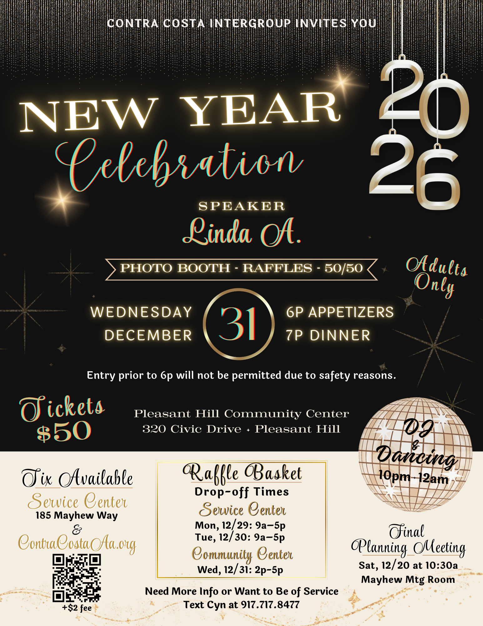 320 Civic Drive, Pleasant Hill (see map) - When: Wednesday December 31 (of course!)
